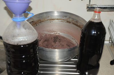 Onun için soğuyan şırayı, bulandırmadan, üzerinden bir kap ile alarak şişelere doldurdum. Pekmez toprağı kalıntıları tencerenin dibinde görülüyor.
